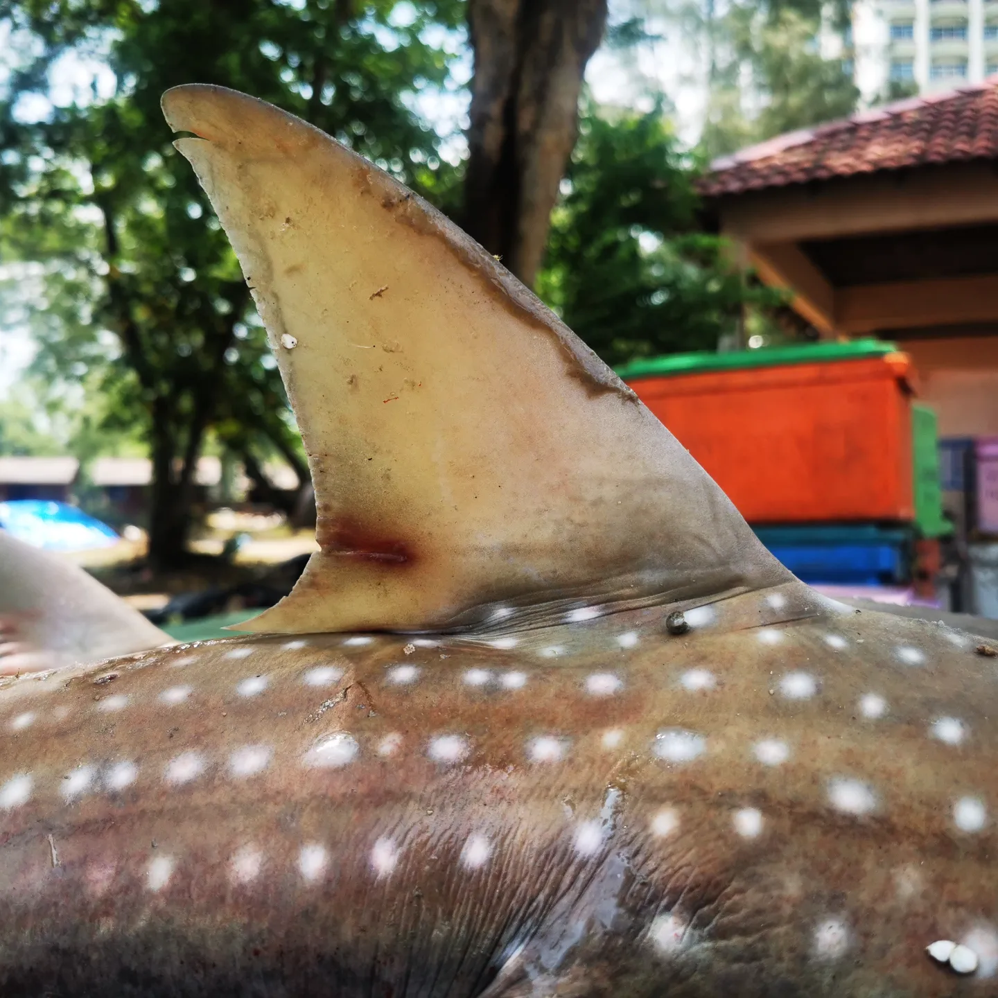 These species are not protected by Malaysian Law yet. However, the Wedgefish and Guitar-shark are reported in the IUCN Red List of Threatened Species as: Critically Endangered.Sadly, these collateral catches are very popular on the Melaka fish markets and restaurants, for their fins. Good money can be made. |